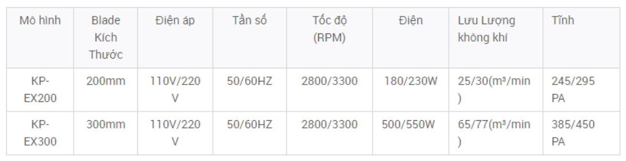 THÔNG SỐ KỸ THUẬT QUẠT KP-EX200